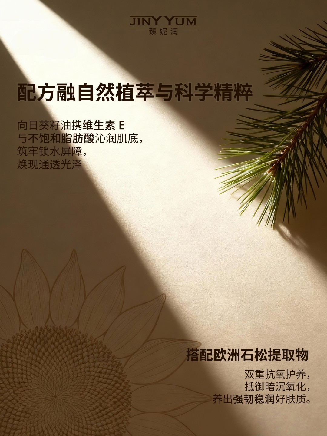 融合向日葵籽油、欧洲石松提取物构筑锁水抗氧屏障💧,